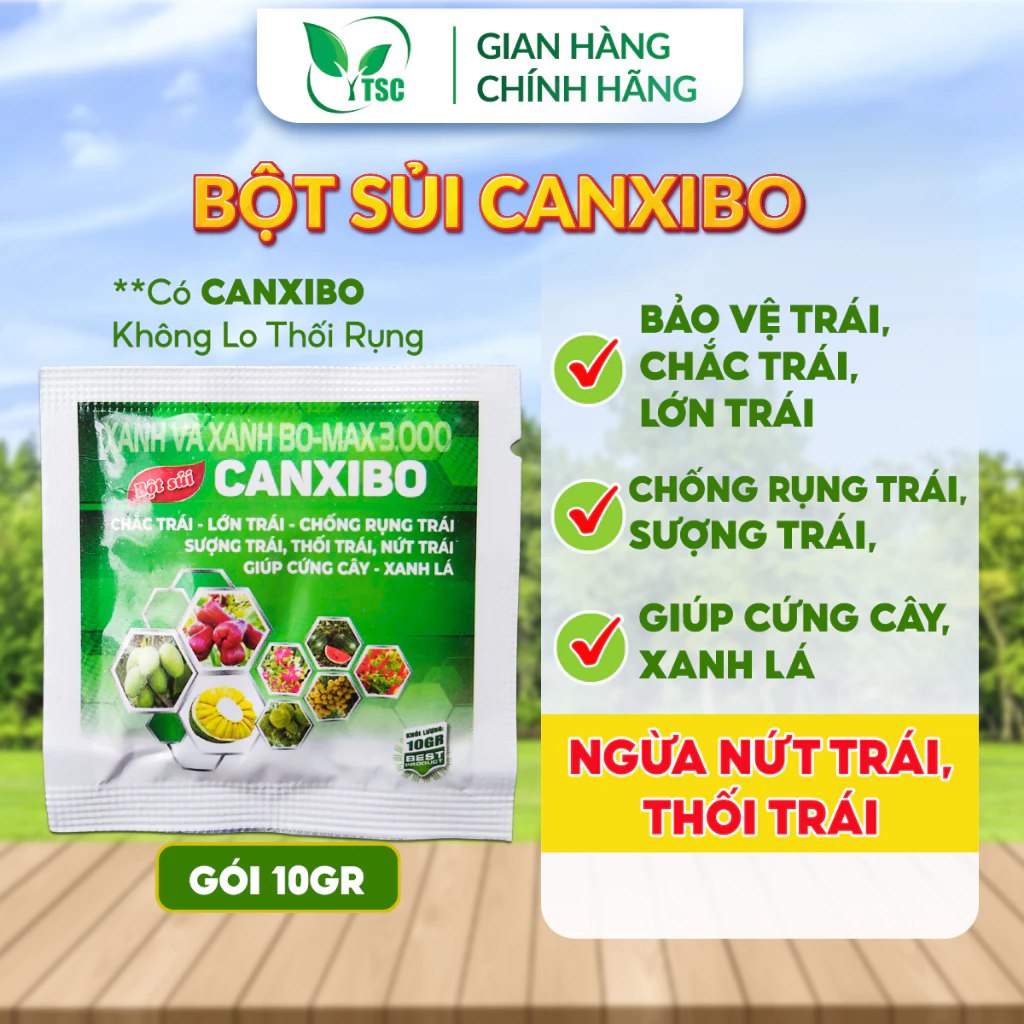 Bột Sủi CANXIBO Thụy Sỹ Chống Rụng Trái, Nứt Trái, Sượng Trái, Ngừa Thối Đít Trái, Giúp Chắc Trái, Lớn Trái – Gói 10Gr
