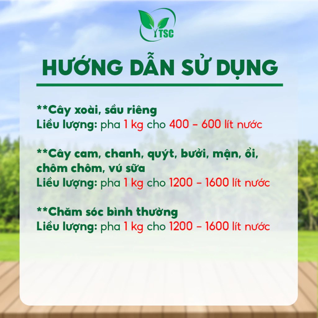 Liều lượng: pha 1 kg cho 400 – 600 lít nước