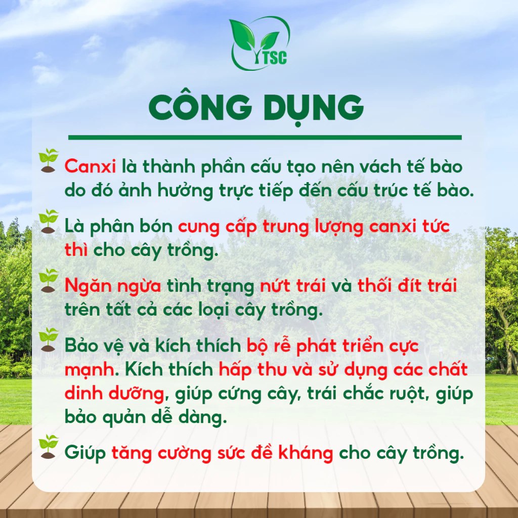 - Là phân bón cung cấp trung lượng canxi tức thì cho cây trồng.