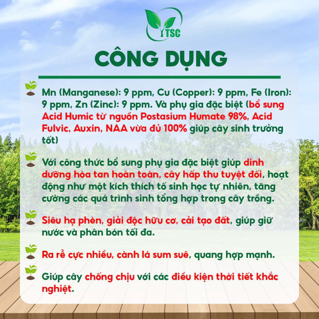 - Siêu hạ phèn, giải độc hữu cơ, cải tạo đất, giúp giữ nước và phân bón tối đa.
