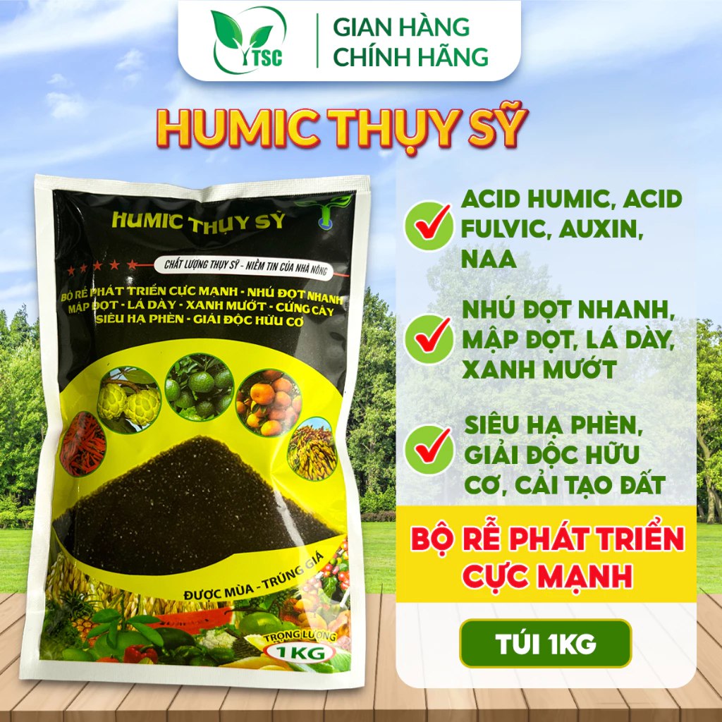 Humic Thụy Sỹ là sản phẩm phân bón vi lượng được nhiều bà con ưa chuộng. Sản phẩm giúp bổ sung hợp chất mùn hữu cơ quan trọng của than bùn, đất mùn,… Được hình thành qua sự phân hủy xác bã thực vật của các vi sinh vật.