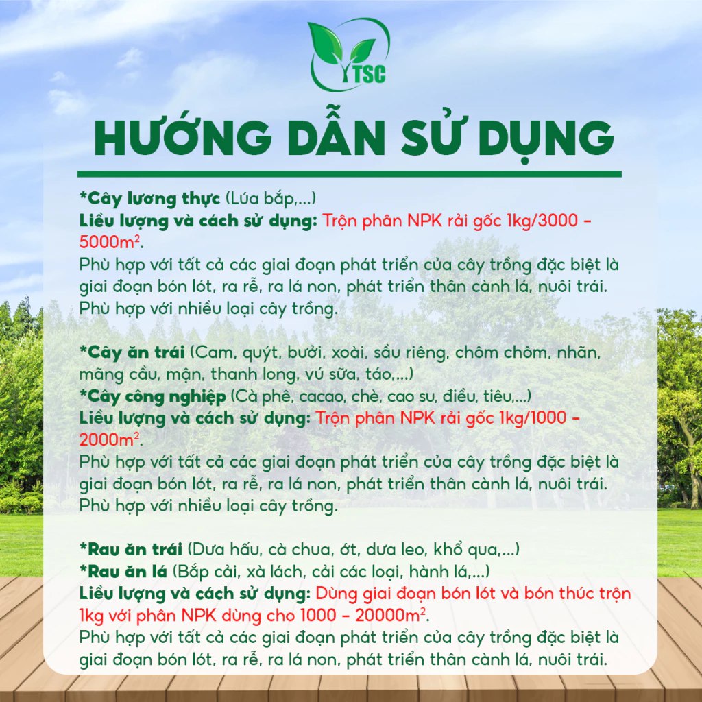 - Dùng giai đoạn bón lót và bón thúc trộn 1kg với phân NPK dùng cho 1000 – 2000m2.