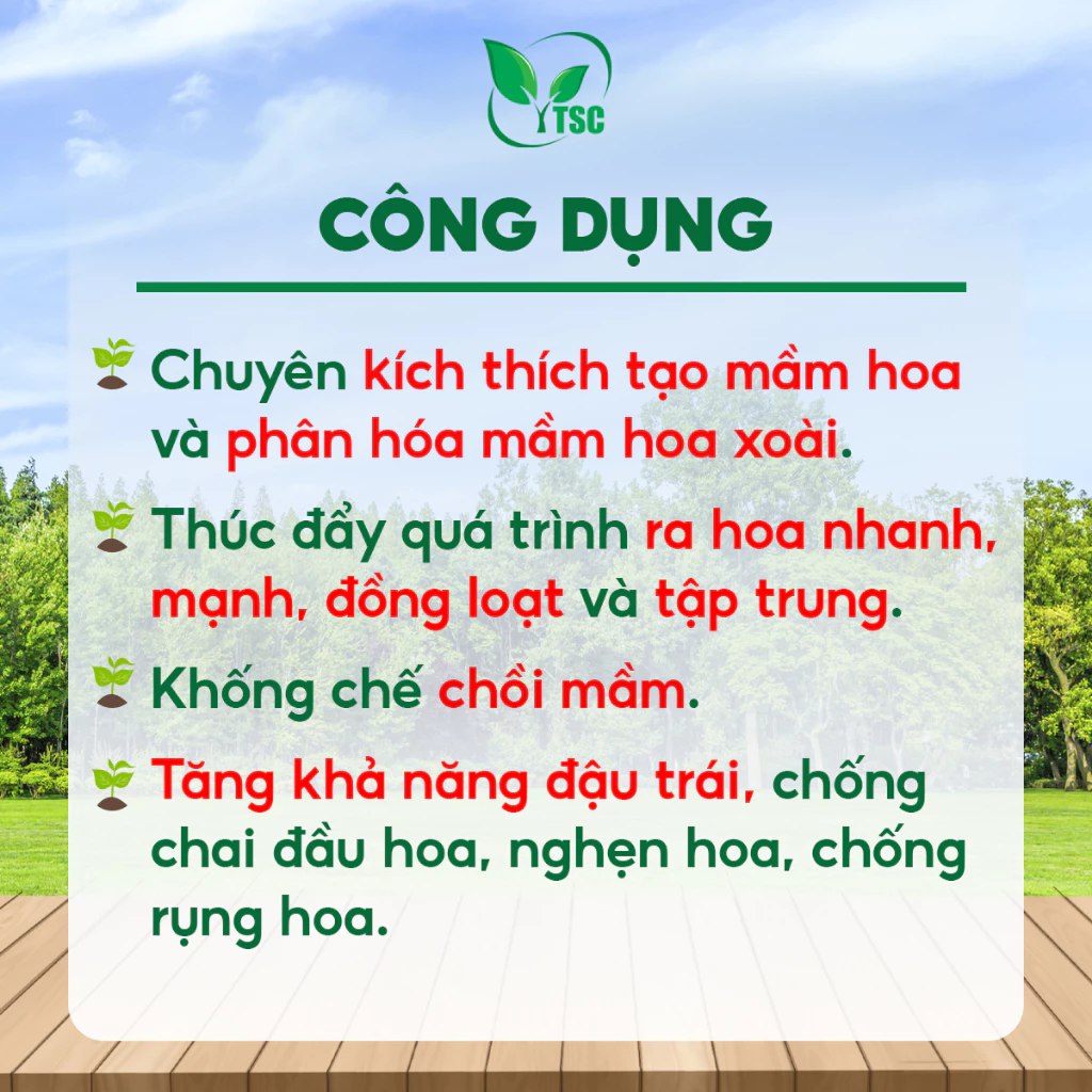 - Chuyên kích thích tạo mầm hoa và phân hóa mầm hoa xoài.