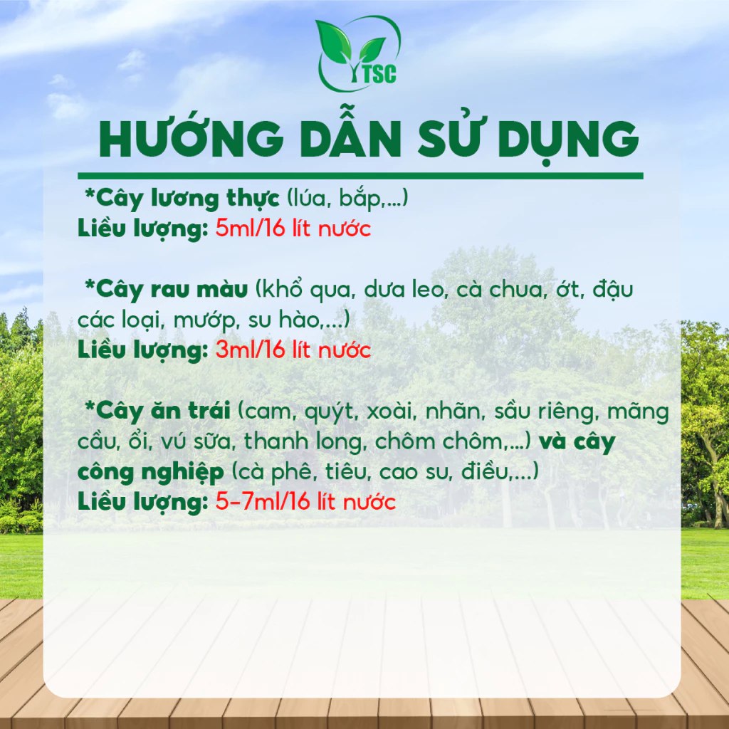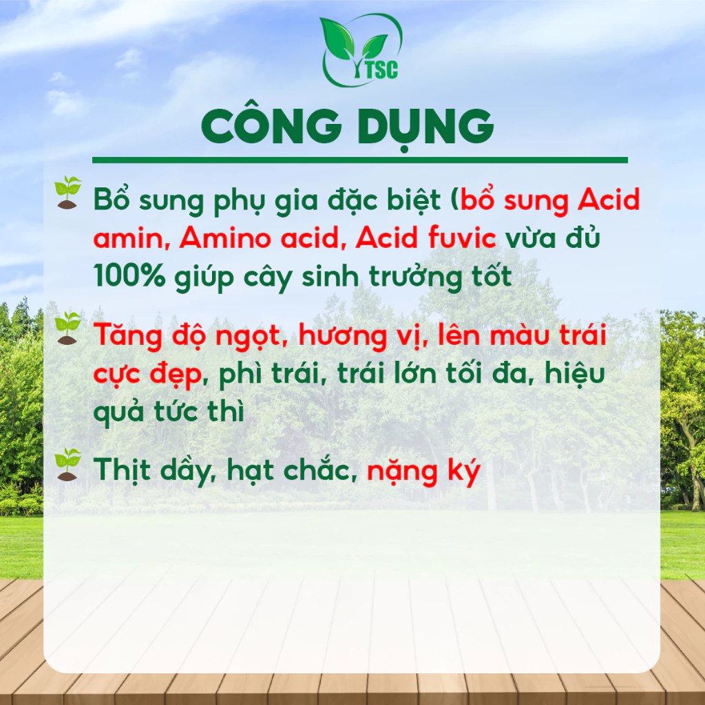 - Bổ sung phụ gia đặc biệt (NPK, Acid amin, Acid fuvic vừa đủ 100% giúp cây sinh trưởng tốt)