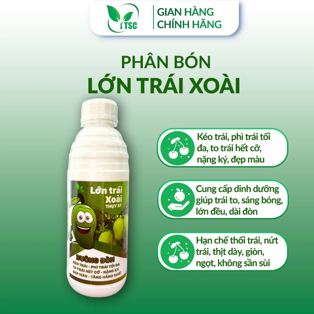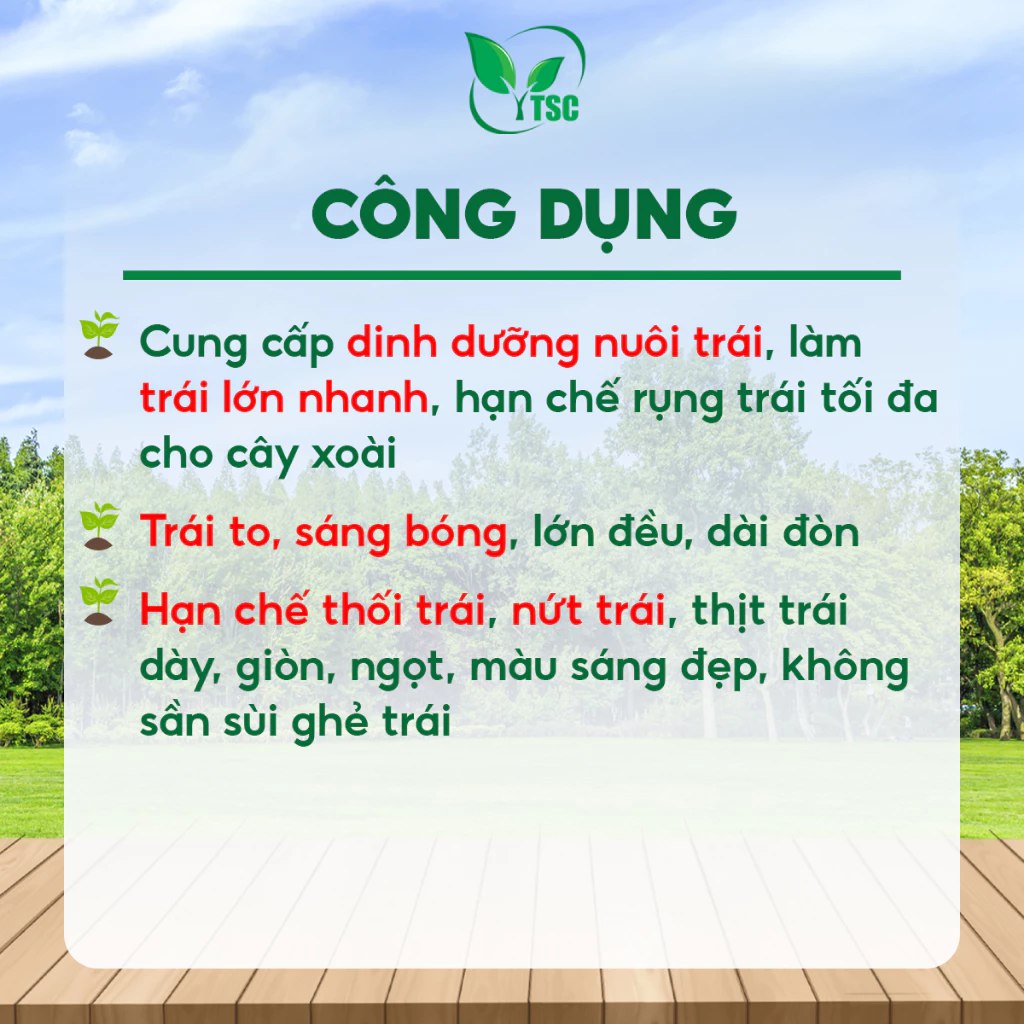 - Cung cấp dinh dưỡng nuôi trái, làm trái lớn nhanh, hạn chế rụng trái tối đa cho cây xoài