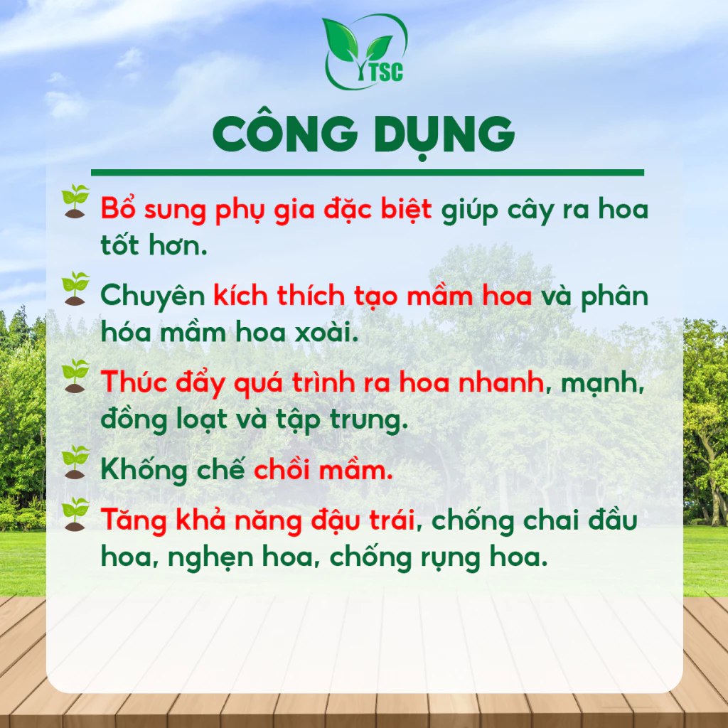 - Thúc đẩy quá trình ra hoa nhanh, mạnh, đồng loạt và tập trung.