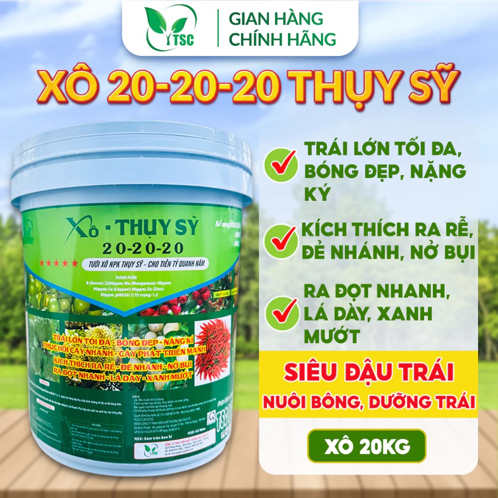 PHÂN BÓN NPK 20-20-20 TE THỤY SỸ – Xô 20kg (10 túi 2kg)